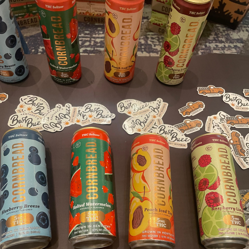 - Cornbread Hemp – Known for having the first USDA organic gummies, their new seltzer line caught my eye with their appetizing can design. I always say, we eat with our eyes, and kudos to Cornbread Hemp for nailing the assignment.