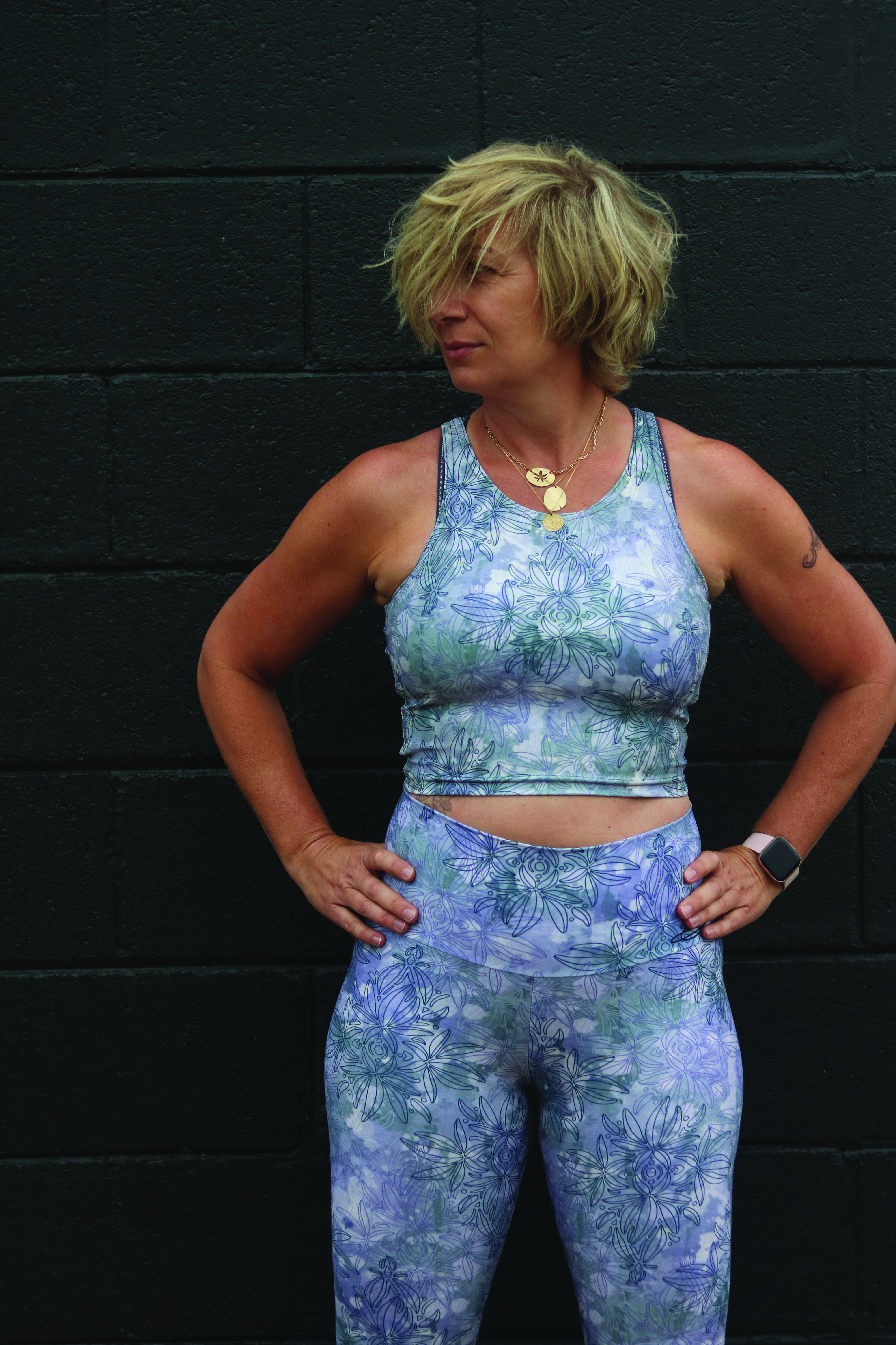 Her latest collection is called Canna Botanique: a line of plant-inspired designs created to challenge the pop-culture idea of cannabis fashion. Lasporte, who likes to do things differently, uses her batik process to move beyond the iconic leaf to showcase the beauty of the plant. She incorporates vibrant colors juxtapositioned with her iconic hibiscus flowers in her Canna Tropico pattern. Then she flips it with a damask pattern in deep purple, with her version of the cannabis “buds” or flowers, inspired by the Purple Haze cannabis strain.